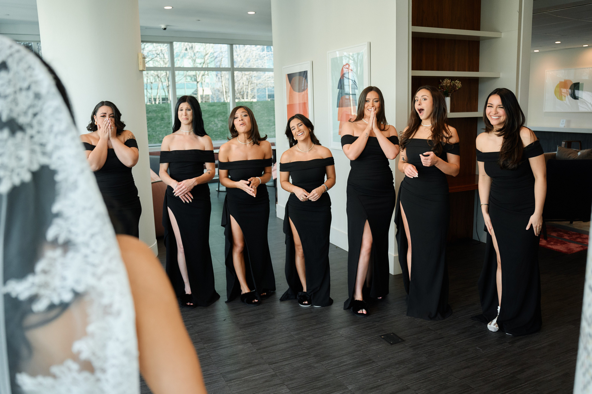 Shaun and Paloma’s wedding took place in December 2025 in the New York City area. The day began in Jersey City, NJ, where Paloma got ready with her bridesmaids. These quiet morning moments set the tone for the day and allowed for relaxed, natural wedding photos before the ceremony.